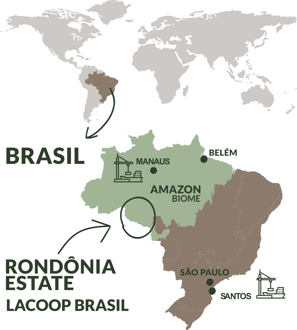 A LaCoop Brasil – Cooperativa dos Agricultores Familiares da Amazônia reúne famílias produtoras de cafés da espécie canéfora em Rondônia, estado que concentra a maior produção cafeicultora da Amazônia brasileira. Desde a sua fundação em 2017, a Lacoop Brasil desenvolve a qualidade e a produtividade dos grãos de robustas amazônicos, cultivados em pequenas propriedades familiares da região há mais de 40 anos.